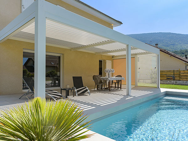 Elle offre un espace privilégié, avec la possibilité de moduler l’ensoleillement et de créer de l’ombre pour mieux se détendre et déjeuner au bord de l’eau, abriter un spa ou un salon de jardin, et valoriser le bassin et la terrasse !